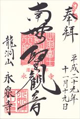由利本荘市、永泉寺の御朱印「聖観音」です。秋田三十三観音第10番札所です。