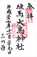 練馬区に鎮座する練馬大鳥神社の御朱印です。