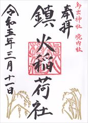 令和5年3月にいただけた鎮火稲荷社の御朱印です。