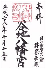 河北町に鎮座する谷地八幡宮の御朱印です。