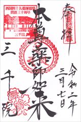 令和元年10月より、霊場開創30周年記念として、金紙薬宝印をいただくことができるようになりました。
