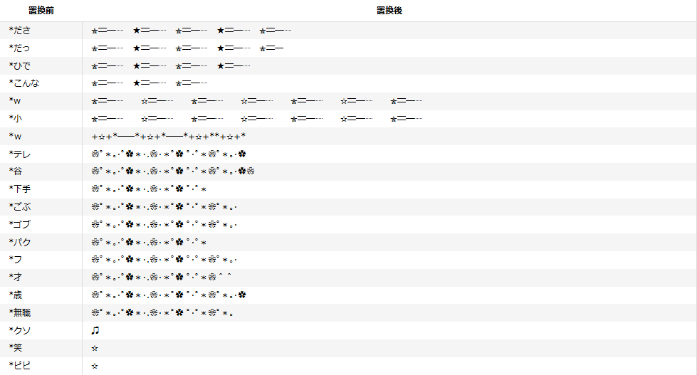 によると、「ださ」「だっ」「ひで」「下手」「クソ」「パク」「こんな」「w(w)」「笑」「小」「谷」「フ」「才(歳)」「無職」「ゴブ」「ピピ」「テレ」などの文字列を含むコメントが華やかな弾幕に変換されているとのこと。「ださい」「ひでえ」といったコメントはガードされ、また「小山」「越谷(東越谷)」「28歳」「無職」などといったお馴染みのワードもがっちりガード、おまけに「ゴブリン」「ピピ…ピピピ…」などといったアンチ用語もガードされている。「w(w)」や「笑」がブロックされている辺り、どうやら自分の曲に笑える点を見出されるのも不愉快だったようだ。そして「フ」という文字が禁止されているため、「この動画、
