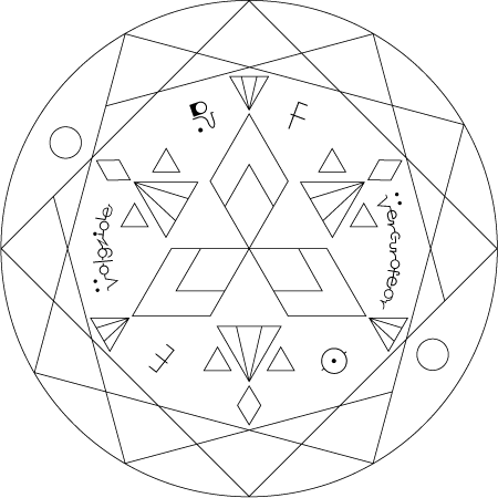 僕はAdobeのイラストレーターは持ってないので、幾何学模様や魔法円などはJww(建物や家具の図面を書くソフト(フリーウェア))で描いてます。図面いじるのが本業ですから、朝飯前ですよ~w
