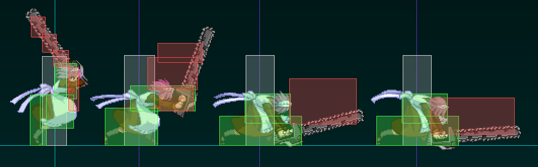 図の説明 緑:食らい判定 赤:攻撃判定 黄:相殺判定