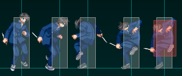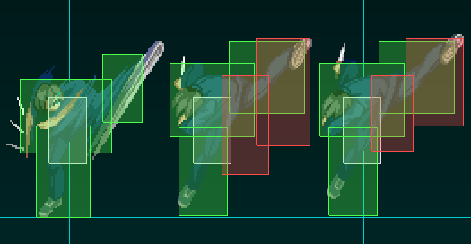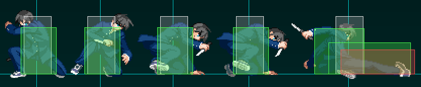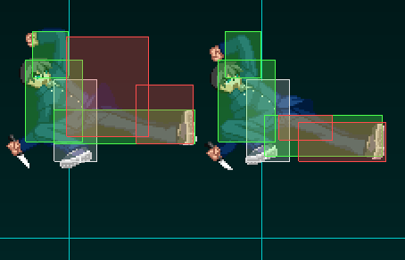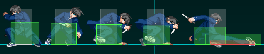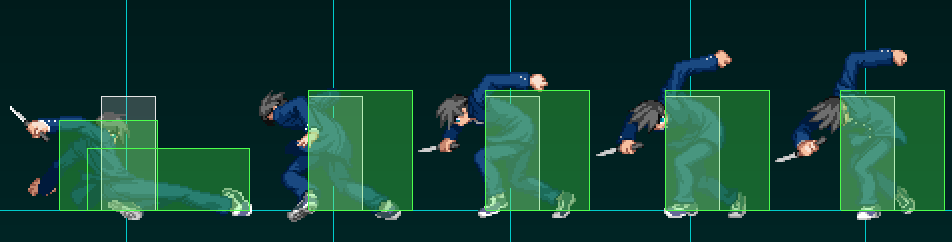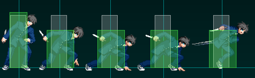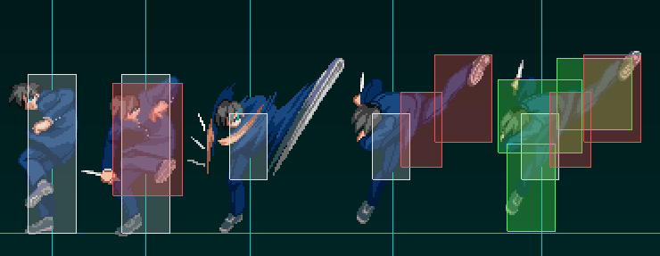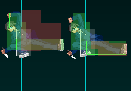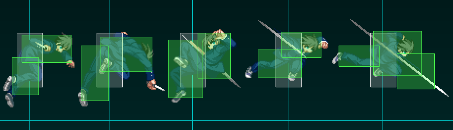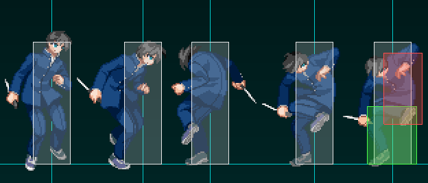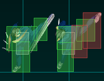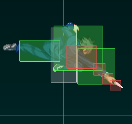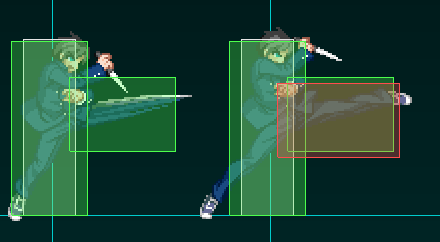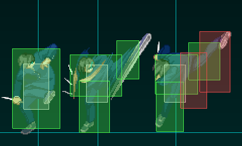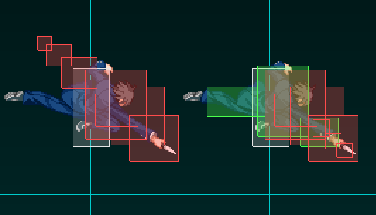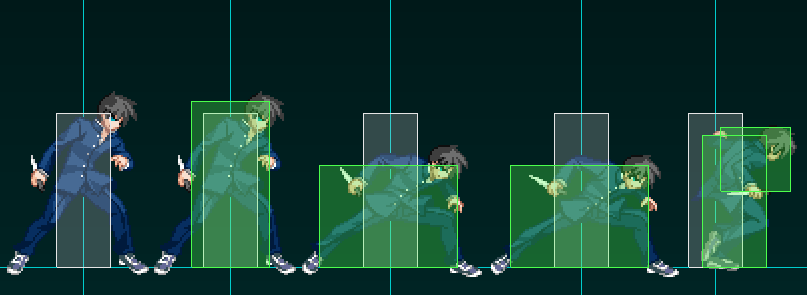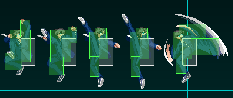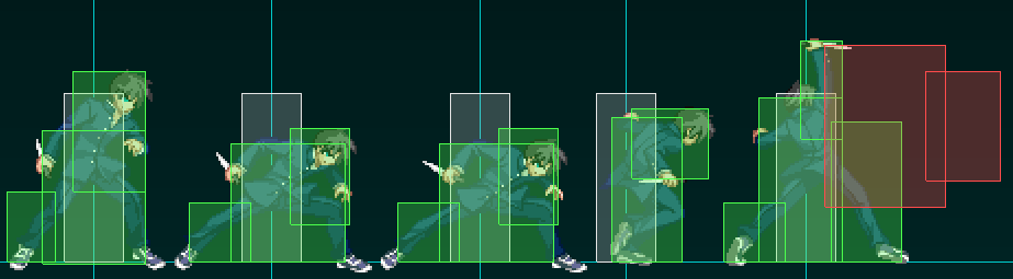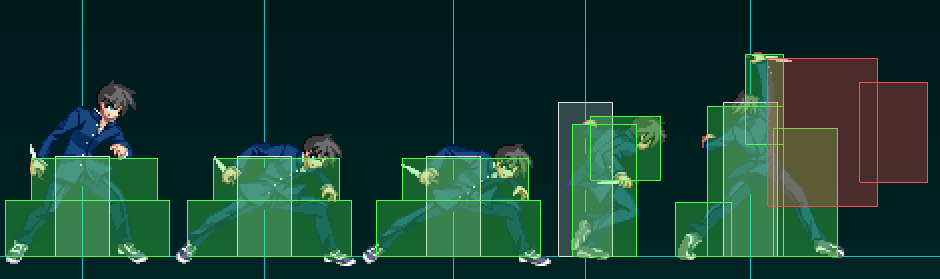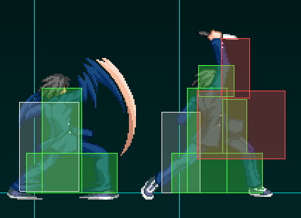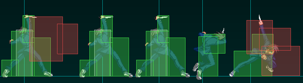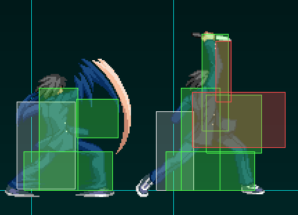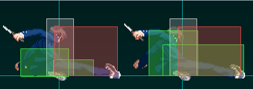図の説明 緑:食らい判定 赤:攻撃判定 黄:相殺判定