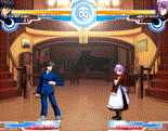 地上戦においてはまずやる事といったらネロ戦と同様画面を見ること、あっちが何をしてるのかを見る事から読み合いになります。基本的に志貴はダッシュ2Aが届く範囲で待って様子をうかがいつつメカの低空Aスクランの飛び動作を見てダッシュ2Aで刺しにいく、低空Aスクランの発生と判定が変更(打点が高く)となり志貴の2Aじゃ当たらないので安心してダッシュ2Aが繰り出せる、よってCメカヒスイ戦はひたすらこれを繰り返す作業ゲーとなります。メカ側としては当然以前のような低空Aスクランを使った立ち回りをしたいはずなのでこれを封じられる事はメカ側としてはかなりの不利を背負います、志貴のダッシュ2Aに対してメカは2Bを置いてきますが今バージョンにて硬直増加(全体硬直32F)のあおりを受け志貴の2C(全体硬直34F)とまではいかないがメカは2Bを外すとかなりの隙ができてしまうので安易に振れない技となっている、もしスカすことができたら反確なのでしっかり差し込みましょう。メカ側が我慢できずに先に飛ぶようになったらメカのJCとキングフィッシャーの被弾に気をつけつつダッシュ2Aで着地を狩りにいくか昇りJAで差込にいくかA派動対空を仕掛けていきましょう