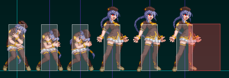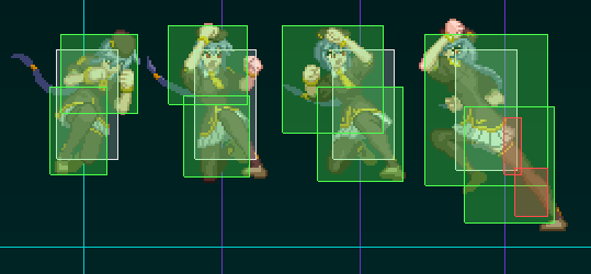図の説明 緑:食らい判定 赤:攻撃判定 黄:相殺判定