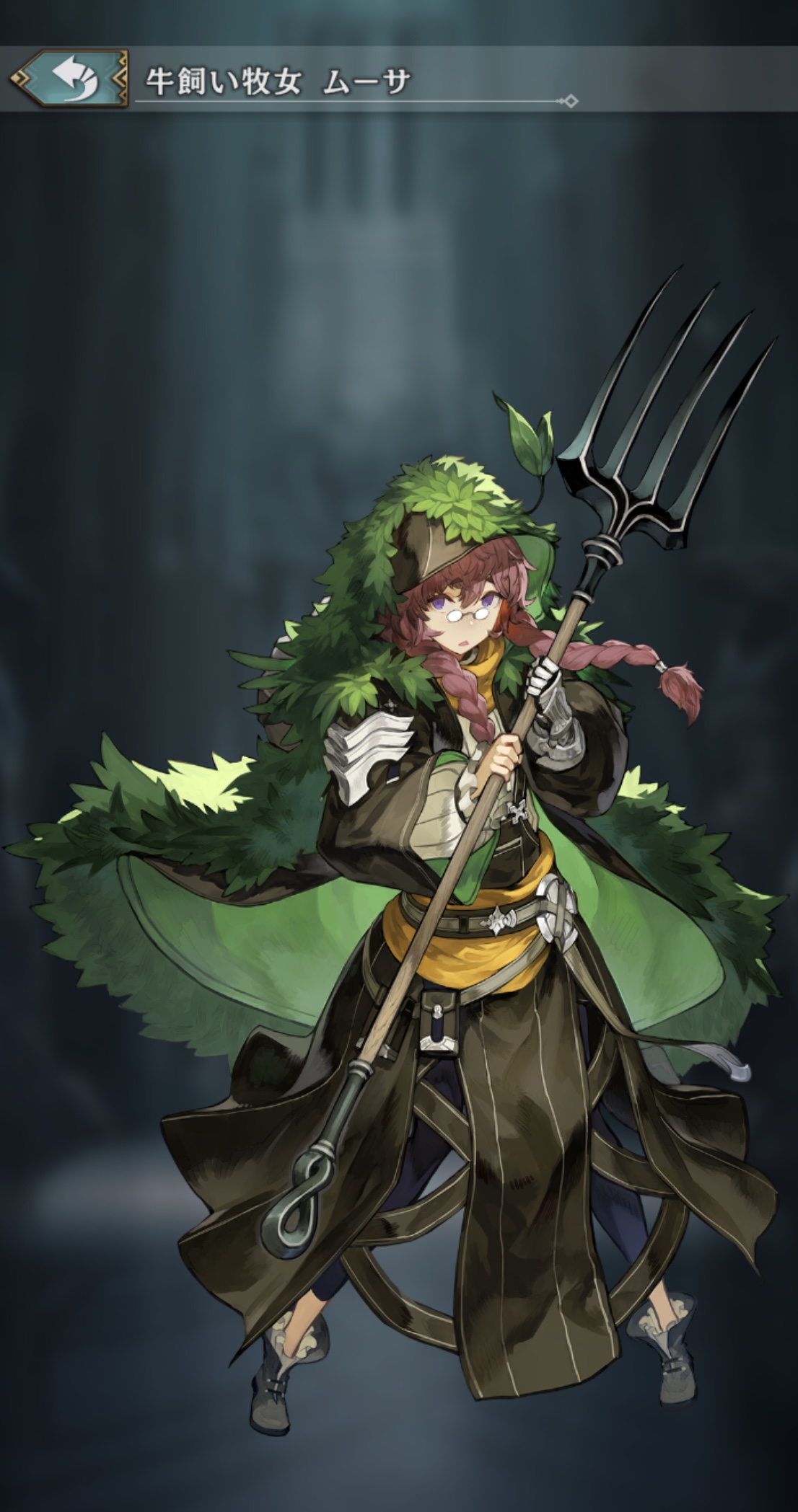 元牛飼いの少女。黒の軍勢によって、飼っていた牛を失ってしまったため、やむなく騎士となった。非力で、身のこなしも鈍いが、獣の動きや風を読む力に長けている。