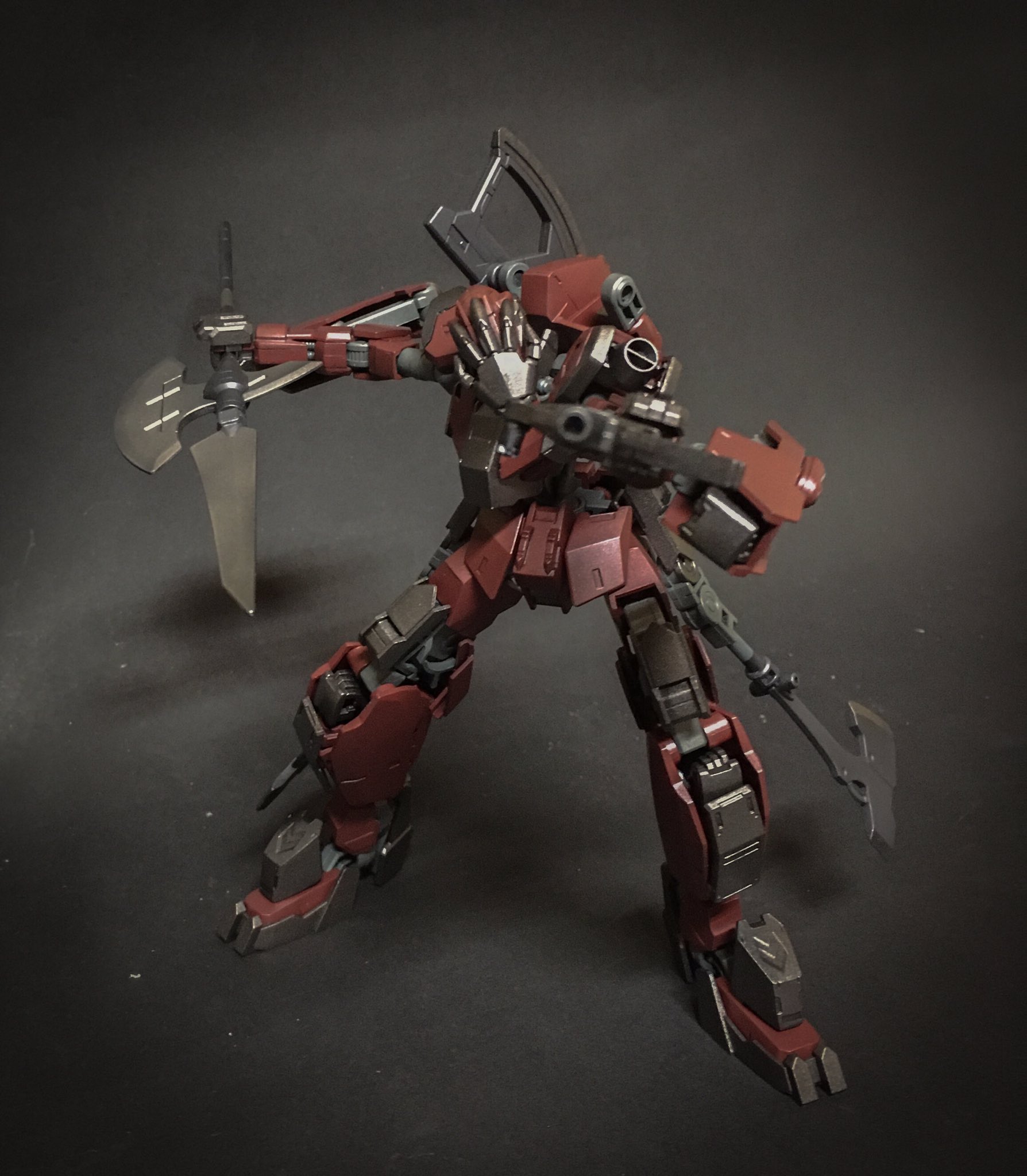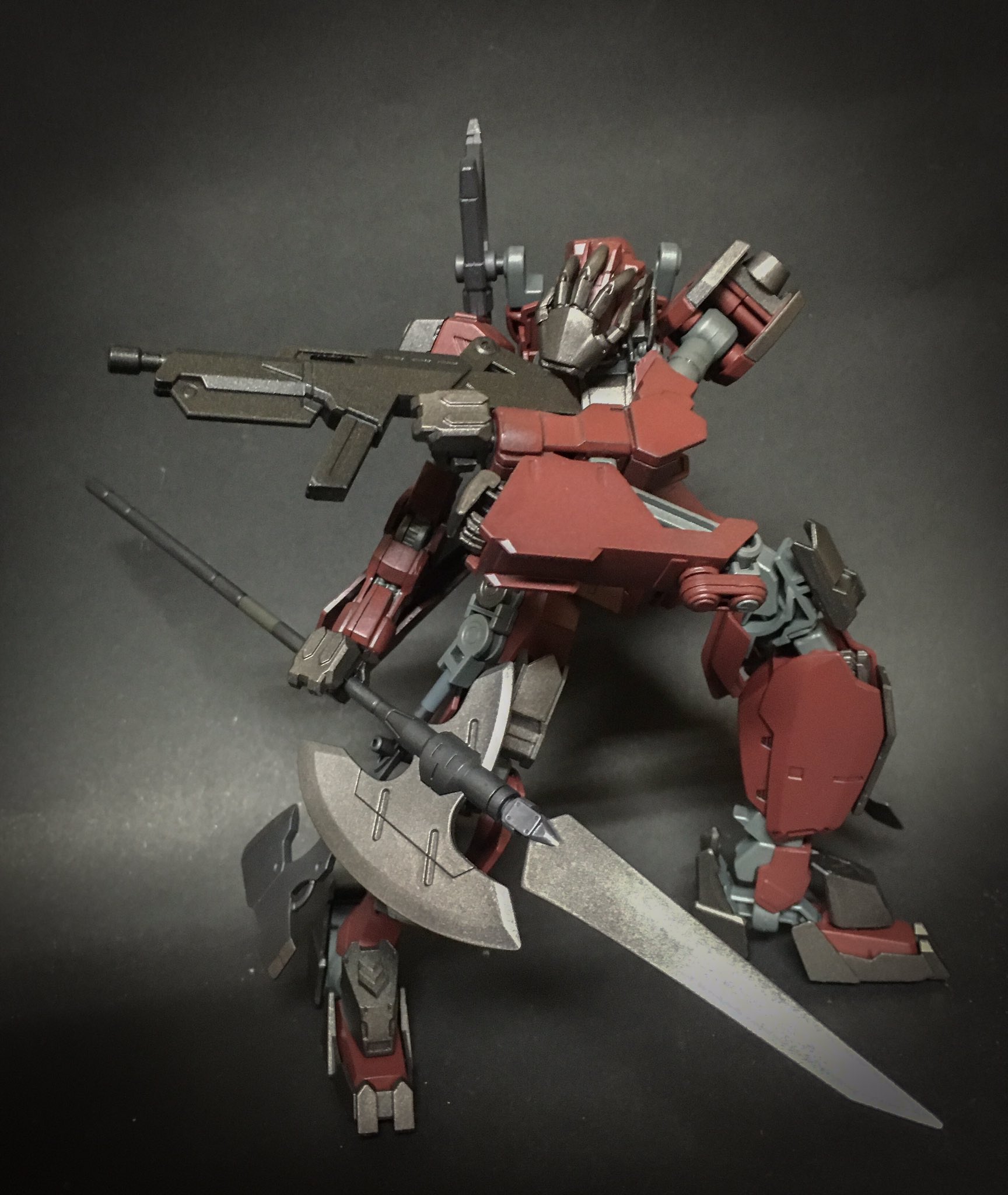 頭部や胴体部の装甲形状もやや軽装ながら『レギンレイヴ・マードック』と酷似しており、機装兵の範疇ではあったがかなり重装のこの機体は、腕の本数が少ない分だけ制御に余裕がある。