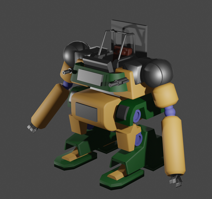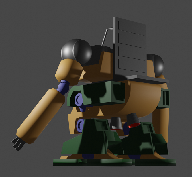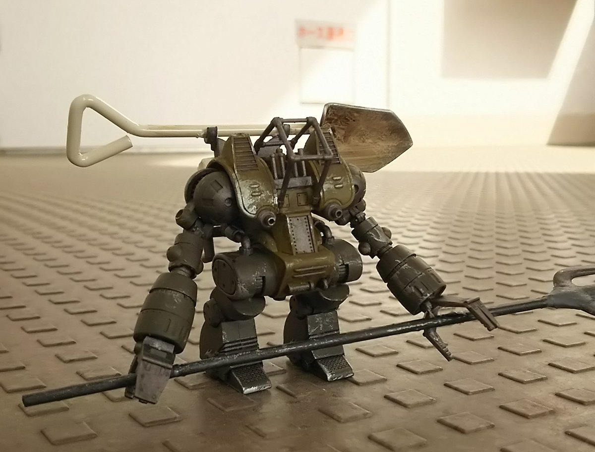模型ギャラリー写真の機体では主武器に三又槍を持っているが、棍棒やメイスなど打撃武器も用いる。