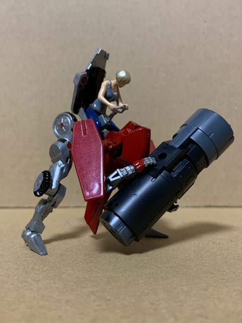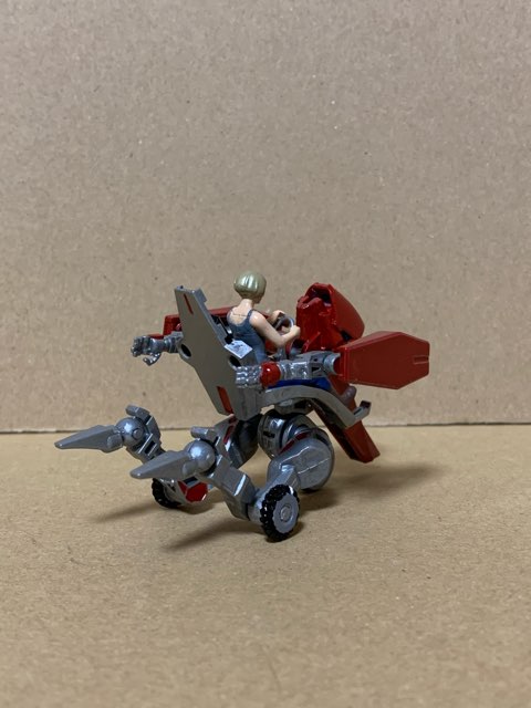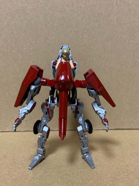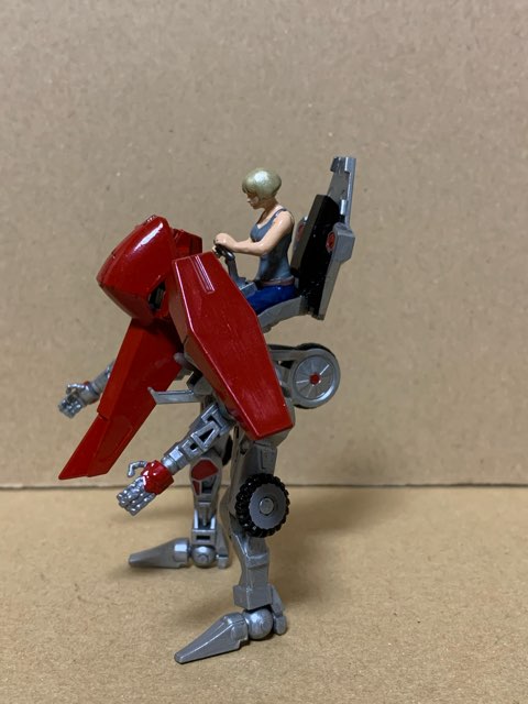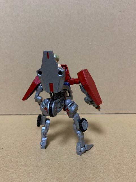 両肩には搭乗者を保護する為にシールドを配し、ややトップヘビー気味にする事でコーナリング時の重心移動をやり易くしている。