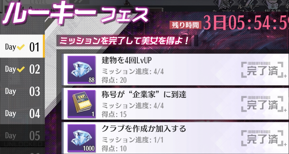 ルーキーフェス(と言う名の中身はよくある初心者ミッション)は毎日公開されるが