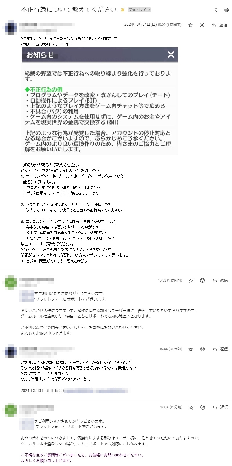 「操作に関する部分に関してはユーザーに一任しているので利用規約に反しない限り不正行為には当たらない」