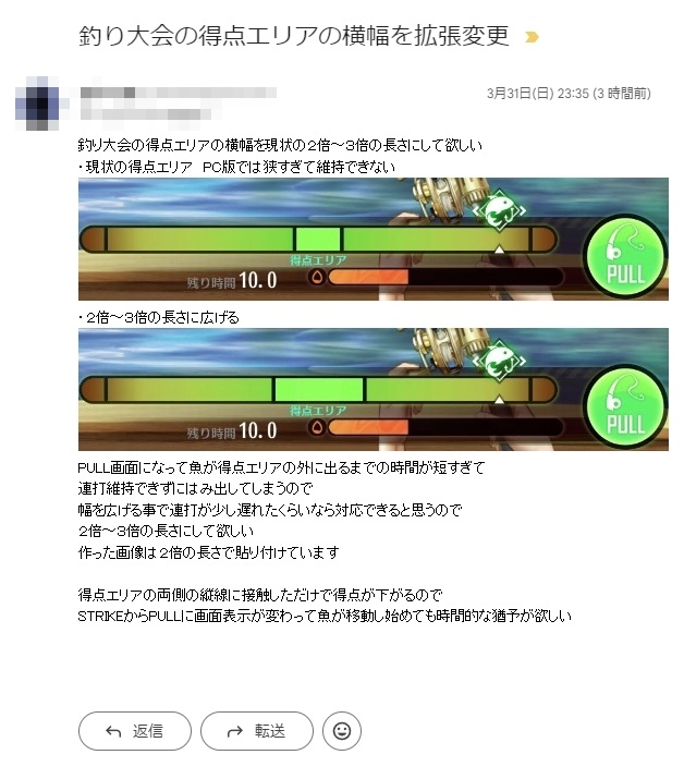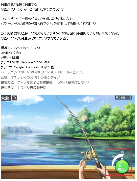 なお、魚の体力ゲージが減少するほど、魚が右方向→に移動する速度が上がる。