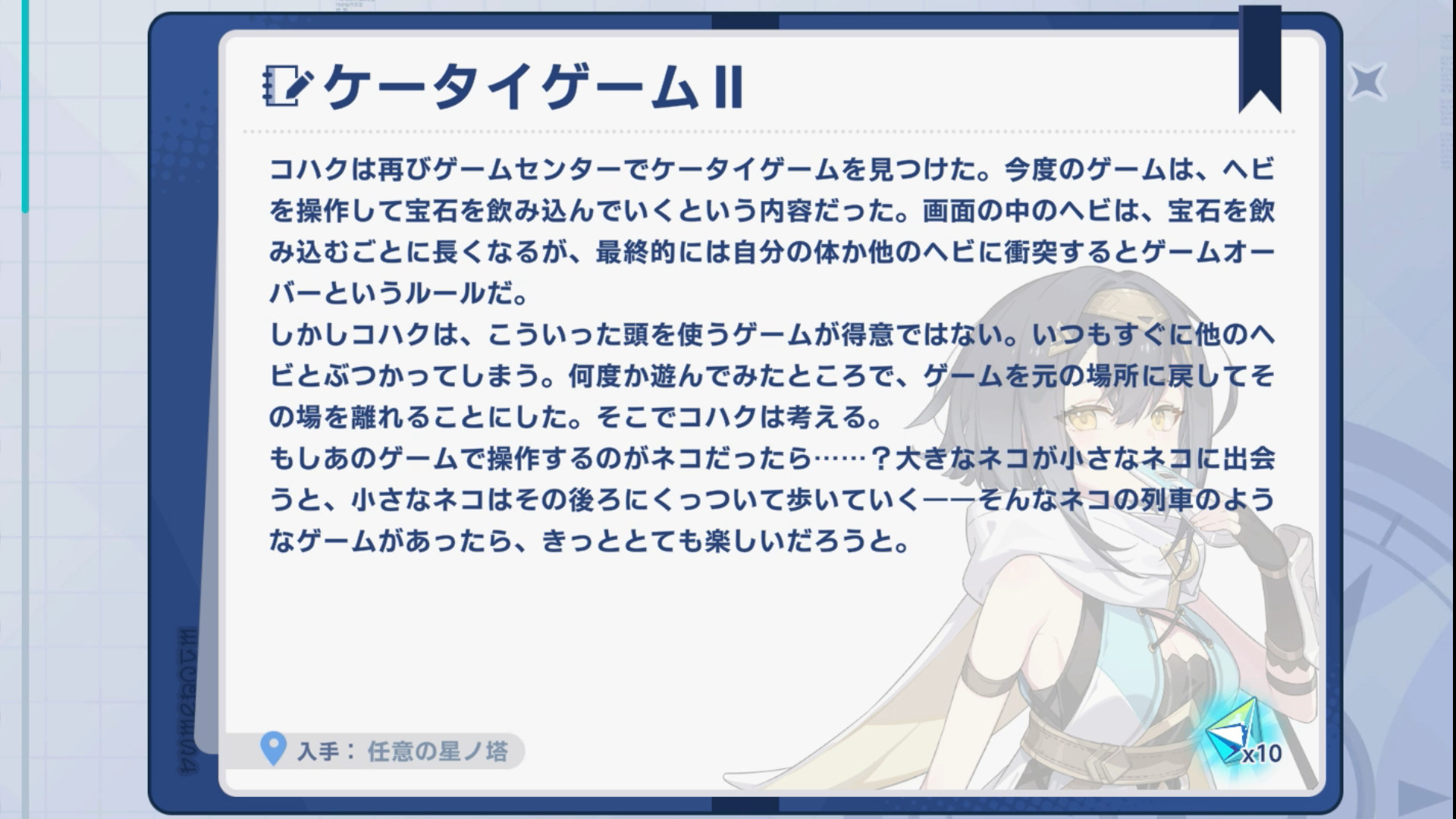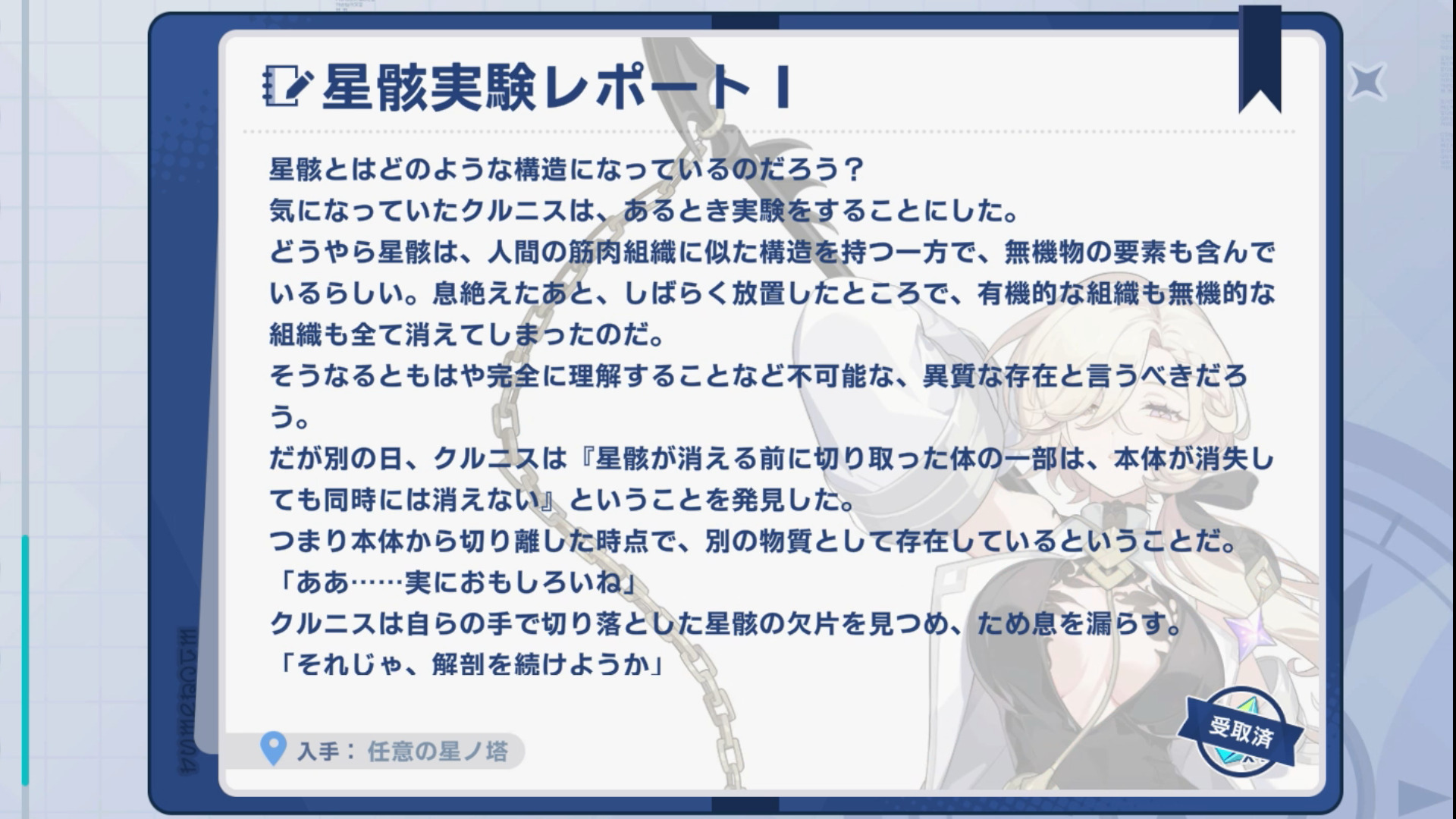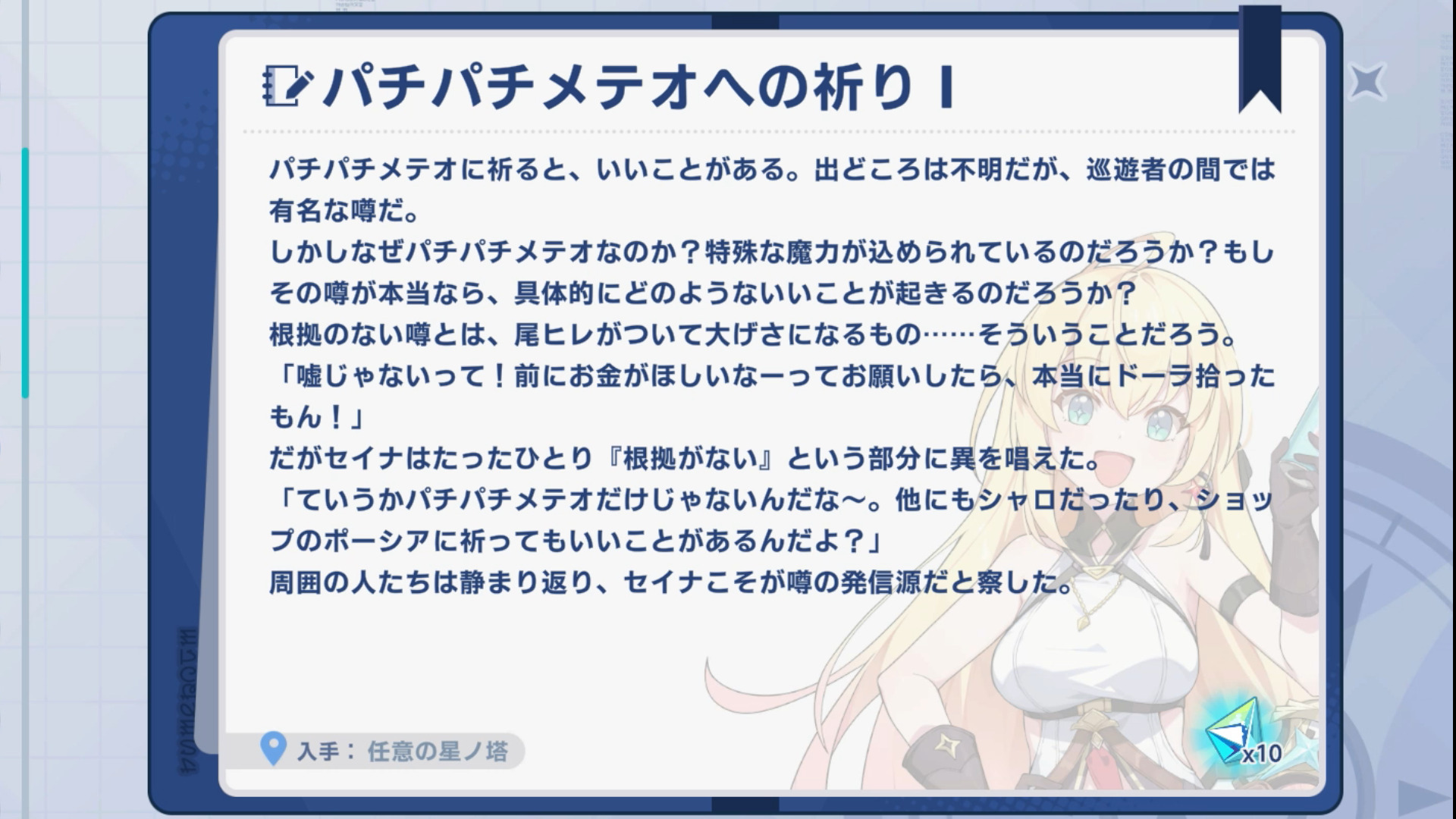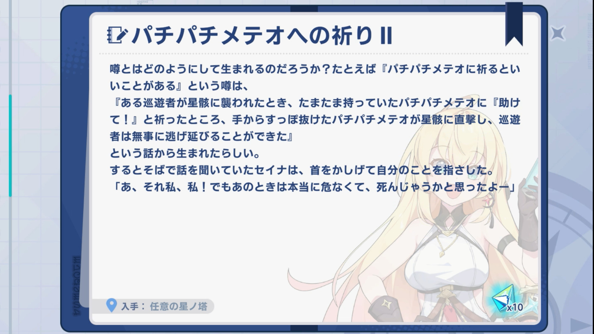 星ノ塔探索で入手できます。おそらく対象NPCとの対話が入手条件です。1枚解放するごとに