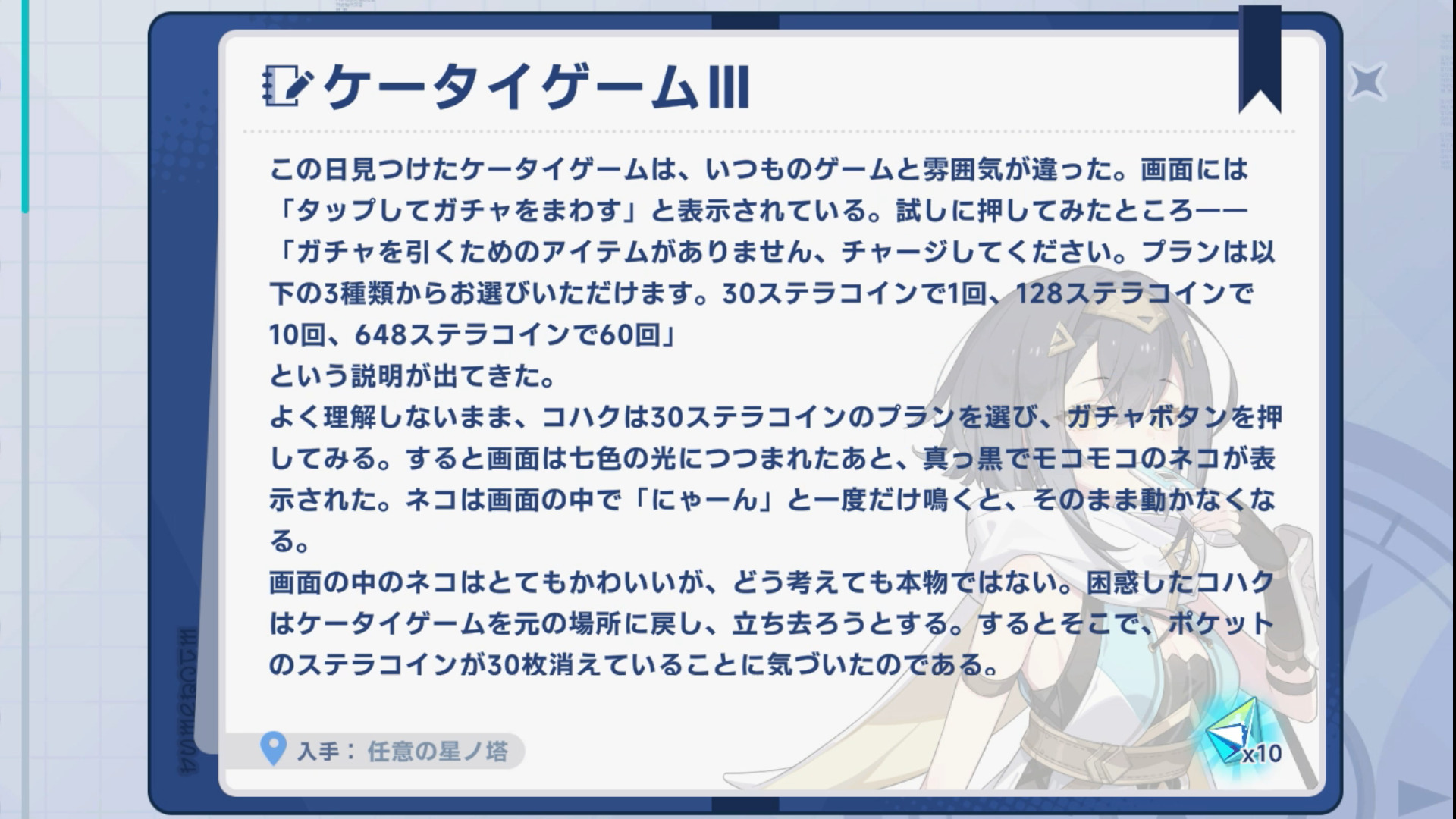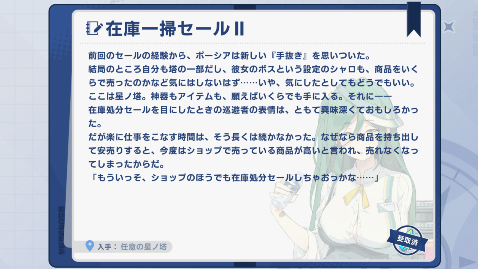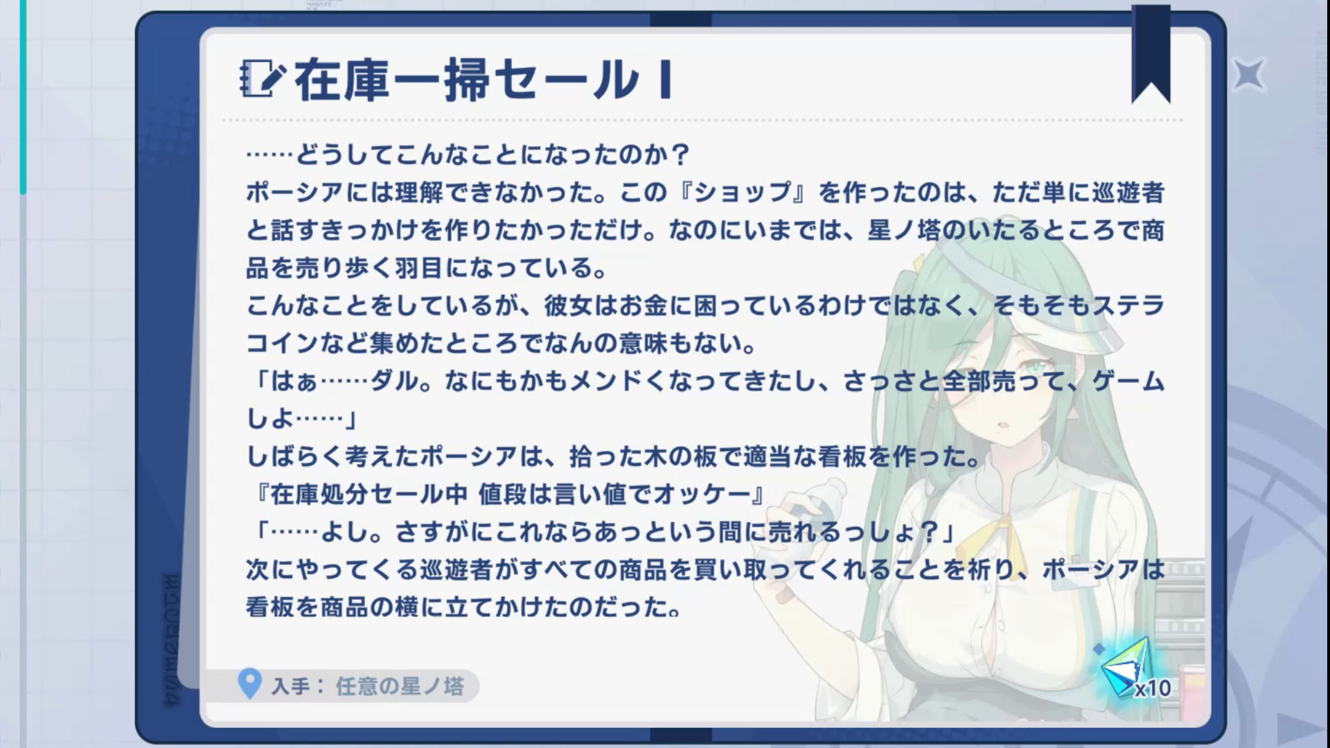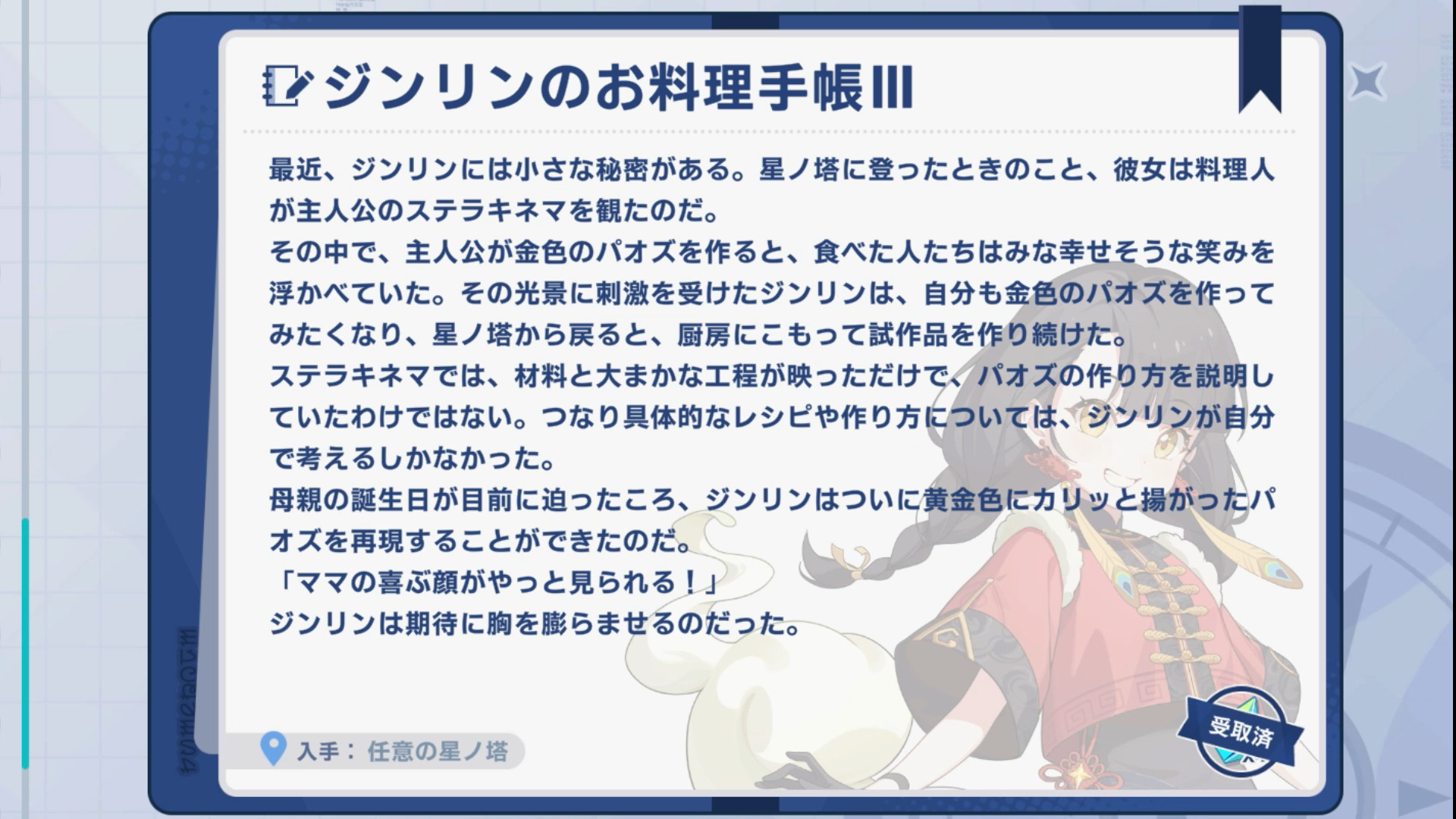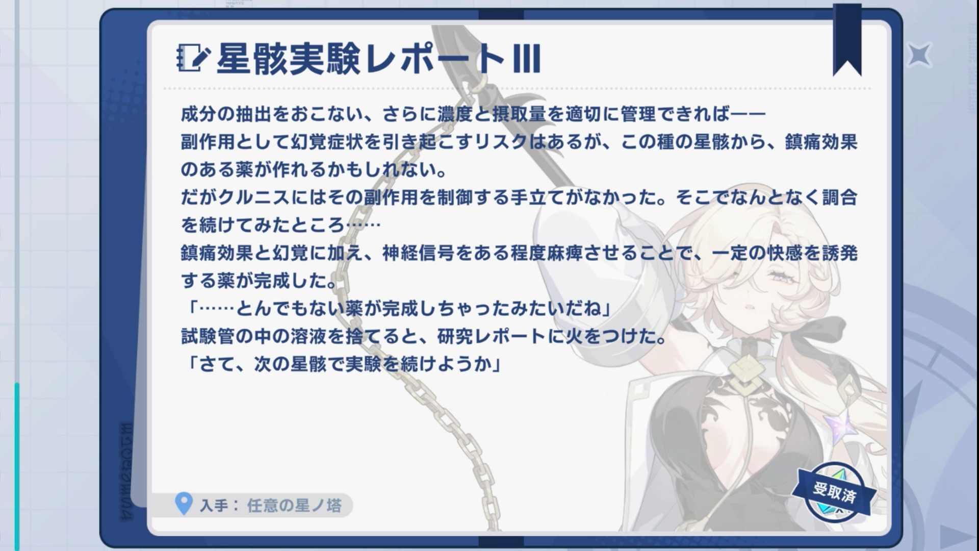 星ノ塔探索で入手できます。おそらく対象NPCとの対話が入手条件です。1枚解放するごとに