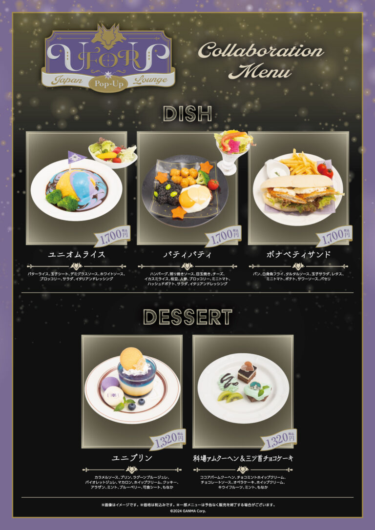 UNIBERUS MENU | FOOD | 🍰 | ユニプリン | 宇宙をイメージしたミルクプリン。オリジナルスプーンでどうぞ。 | 2024/07/30 | |