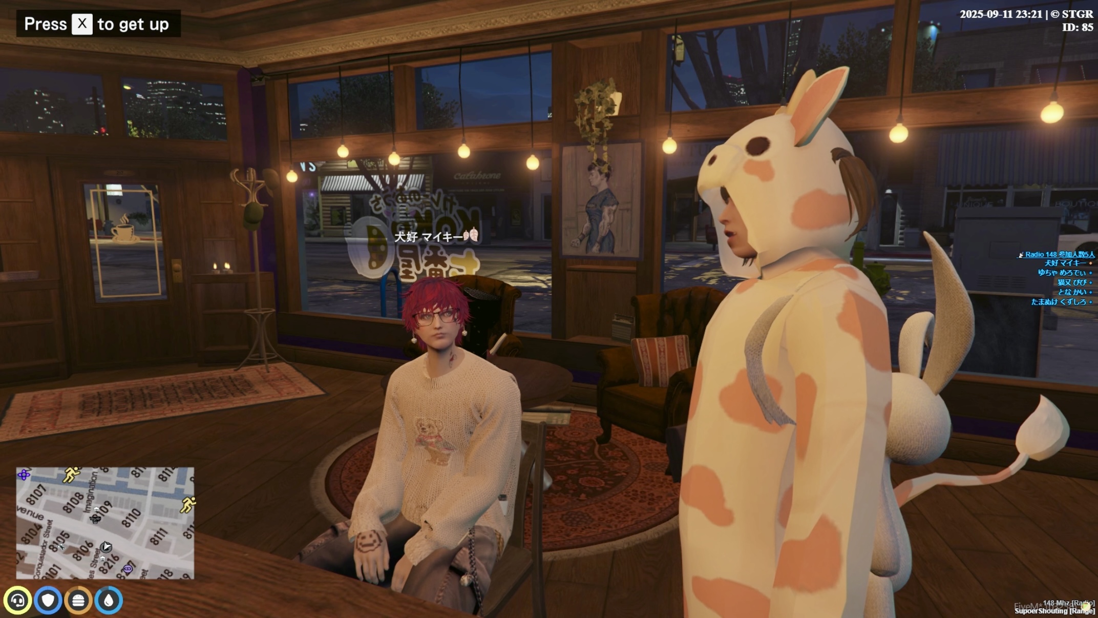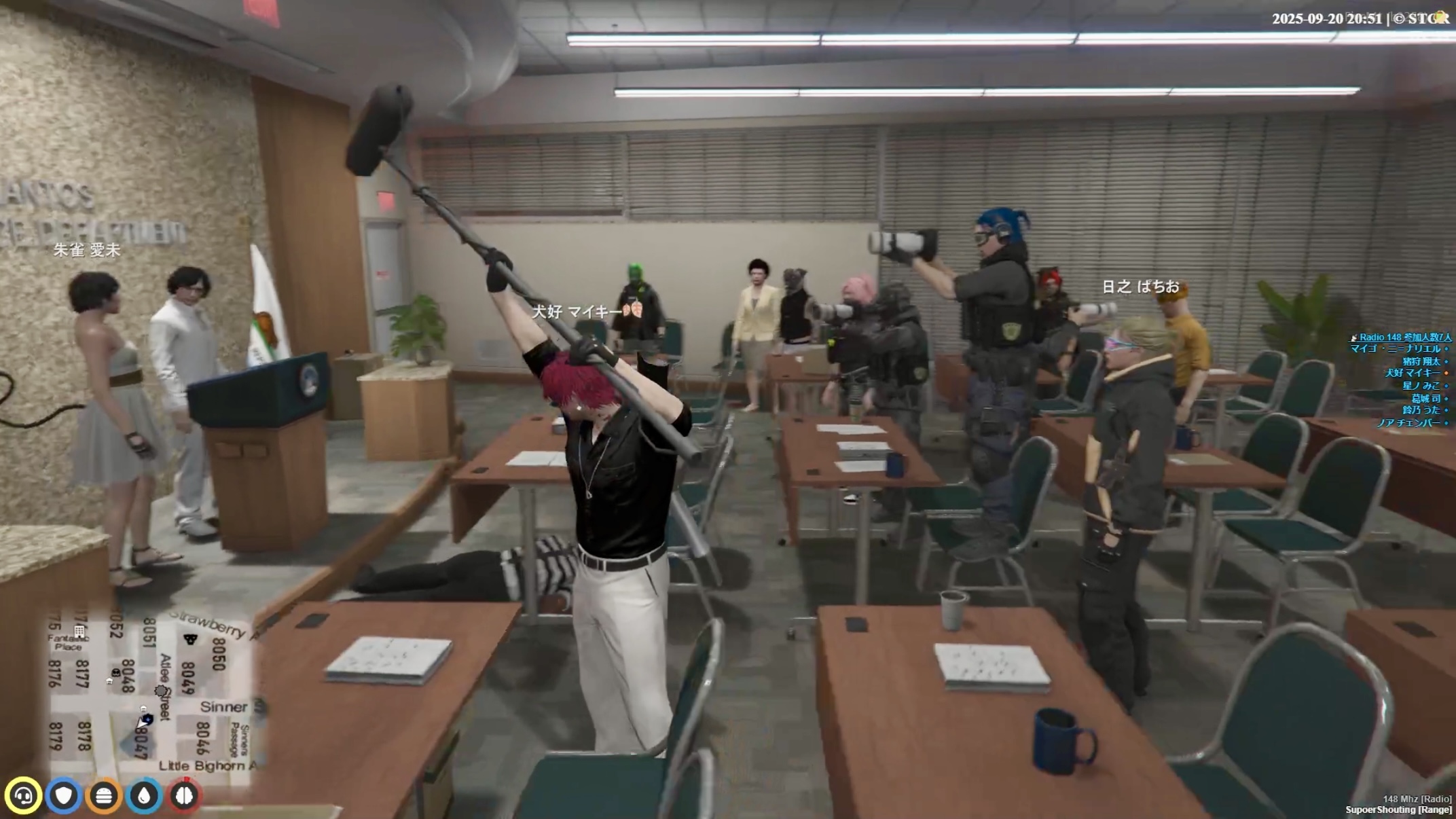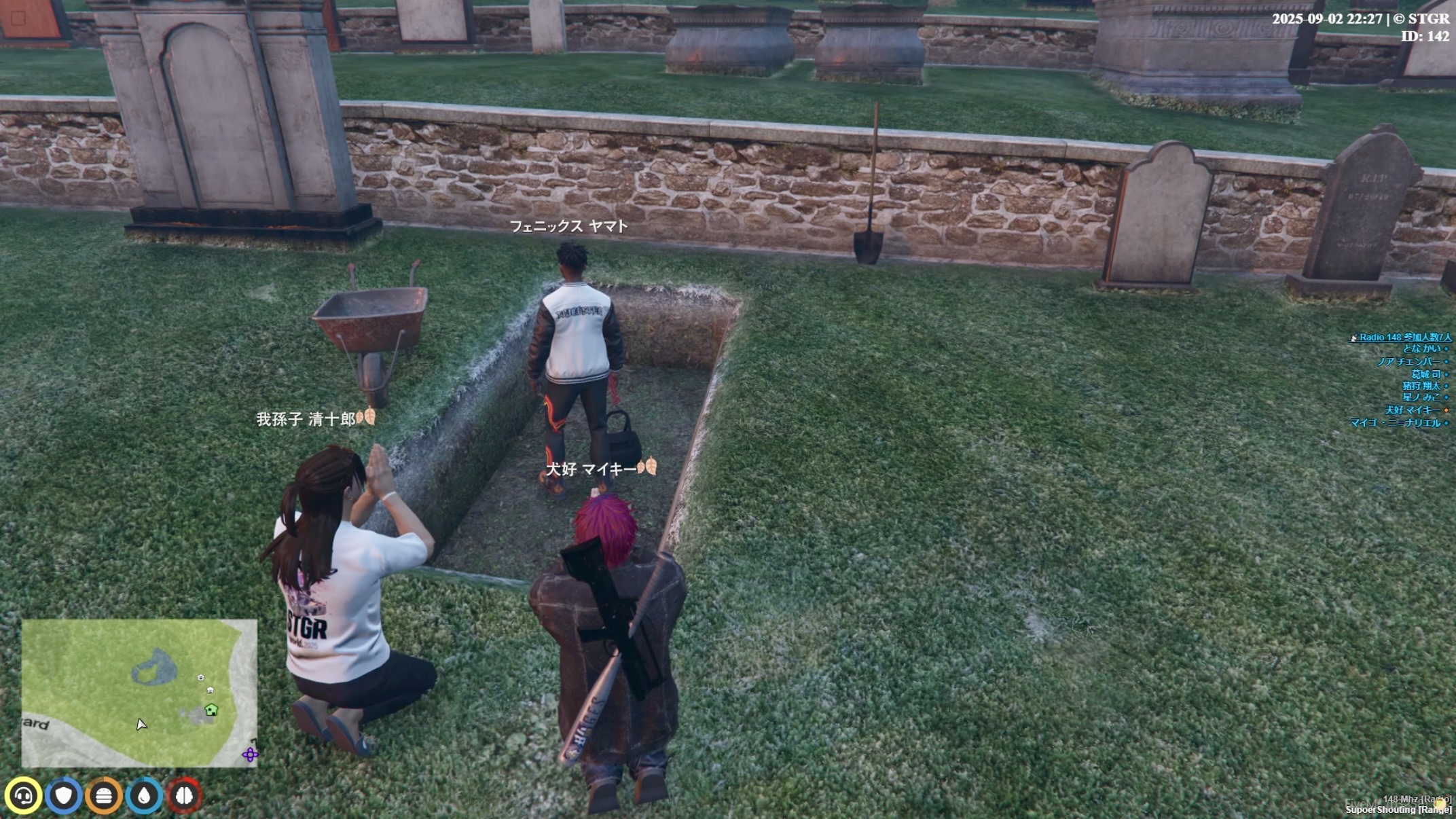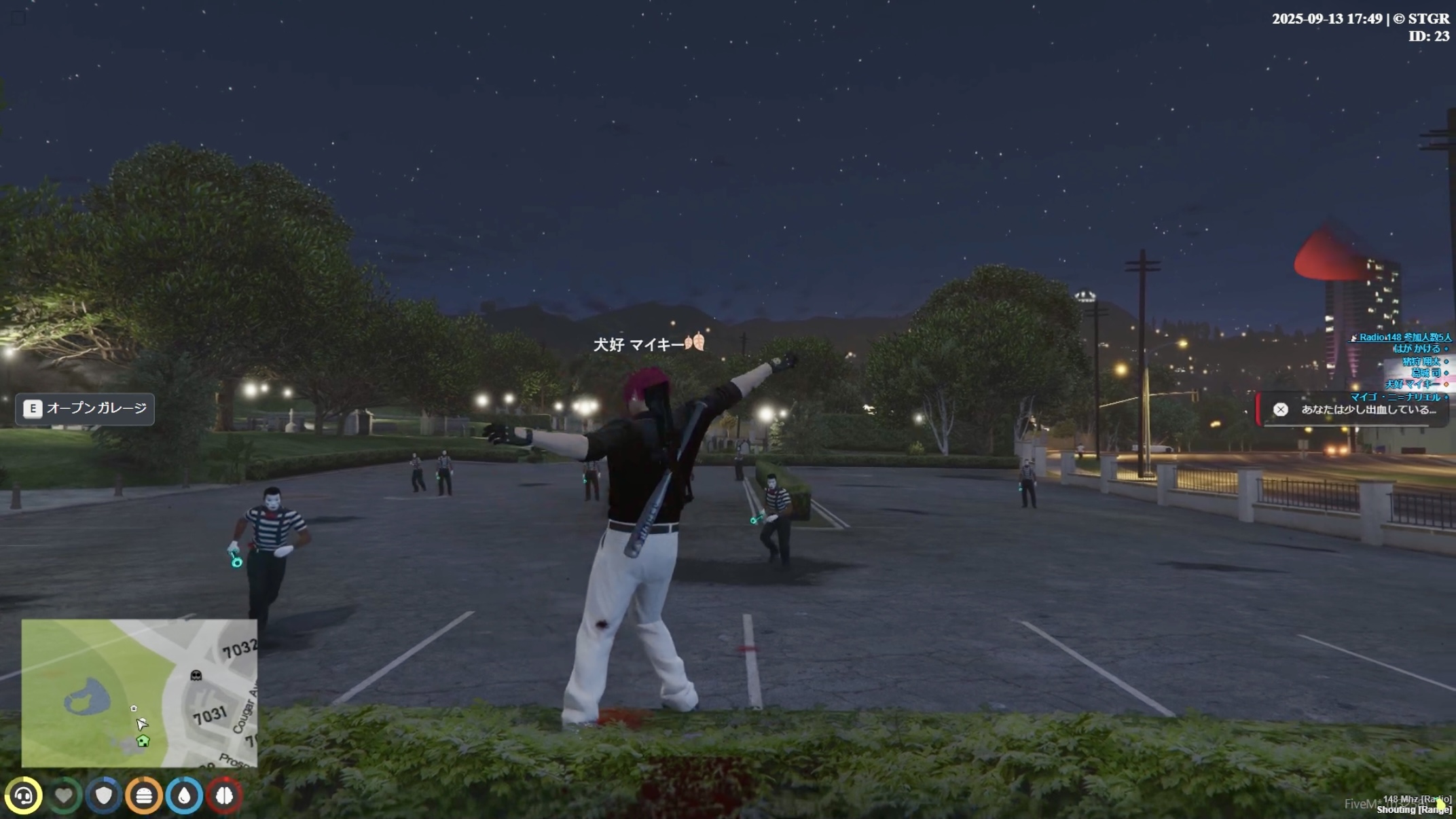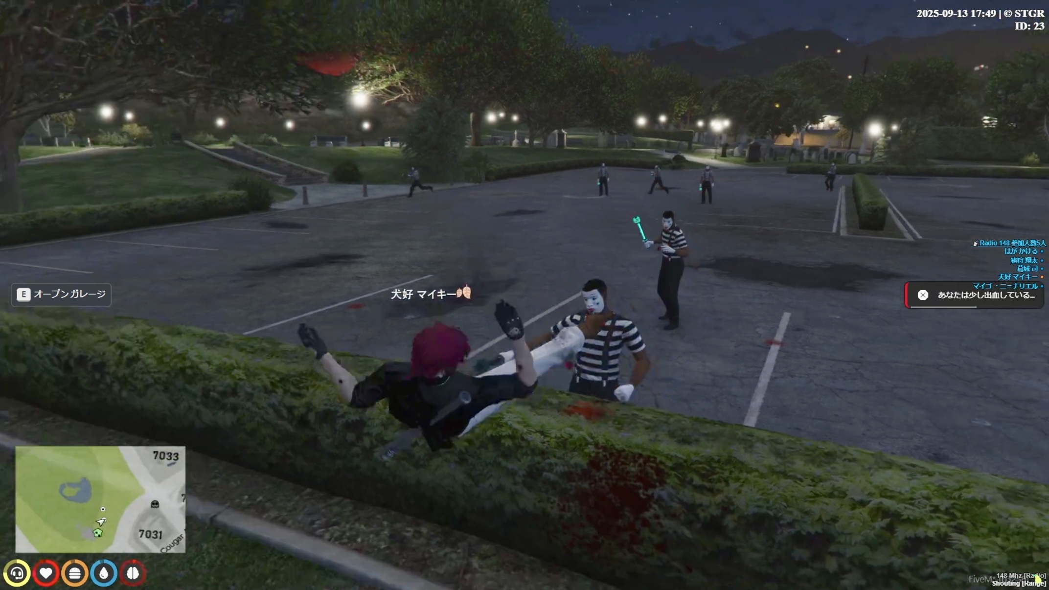 22人の友達と一緒に、ロスサントス観光にやって来た。0時には帰国する予定。特殊な国から来た自分たちは身体が弱く、何が原因でダウンしても即死してしまう。 物価の高いこの街では少し買い物をしただけですぐに資金が尽きてしまい、アルバイトを探すことになった。 だん市長に市長補佐の職を斡旋され、市役所へ向かうことに。しかしその道中、不慮の事故で仲間が1人、また1人と命を落としていく。 仲間を墓場で弔い、市役所へ戻る途中、自分も一輪車で転倒してダウンする。仲間たちに見守られながら息を引き取り、先に逝った仲間たちと同じ墓に埋葬された。 07/03 奇跡の復活 詳細 街に来て初めてのダウンから約2週間を経て、奇跡的に復活を果たす。しかし、起きた時に友達の姿は1人もなかった。 復活したことで自分が即死しないことに気付いたが、変わらず身体は弱いまま。ダウンした場合、その日一日は活動不能となる。(1日1ライフ制) 07/20 個人医見習いになる/KoKo七番屋就職 詳細 KoKo七番屋での職業体験を経て、この街に住むことにした。まずは収入を得るため、この街の医療を学ぶために個人医の職を志す。山下市長に面接を受け、個人医見習いとしてジョブを受け取る。ダウンしても死なないこの街の住人たちの強さの秘密が分かれば、死んだ仲間たちを助けられるかもしれない。 その後KoKo七番屋店長の牧田ここなから連絡を受け、正社員になるなら車を買ってあげる、との誘いに就職を即決。2つのジョブを掛け持つことになった。 07/31 鈴乃おとの兄弟 詳細 山下市長から、今日個人医の面接をした鈴乃うたという人物が、「ロスサントスに来た20人の旅行者のなかに私の兄弟がいた、その弔いに来た」と話していたと情報共有を受ける。 08/13 白骨化した友達 詳細 キャプテンわきをが墓場で拾ったという人骨が、マイキーの友達ではないかと見せてもらう。「…マルンジャ…エゾ…」と言っているように聞こえるその頭骨は、遅れて街にやって来た友達のオルガのものかもしれない。 08/26 我孫子清十郎復活 詳細 いつも通り墓場で待機していると、突然「マイキーくん、助けて…」と声が聞こえる。もしかして、と彼の大好きだったコーラを墓にお供えして祈ると奇跡的に彼の身体が蘇る。マイキーがこの街で学んだ医療知識を持って治療し、普段通りの生活ができるまでに回復した。マイキーと同じく身体が弱いため、ダウンするとその日一日は活動不能となる。 08/27 鈴乃おとの死 詳細 おとの姉のうたから妹が亡くなったことを告げられ、彼女の死が明らかになる。 |