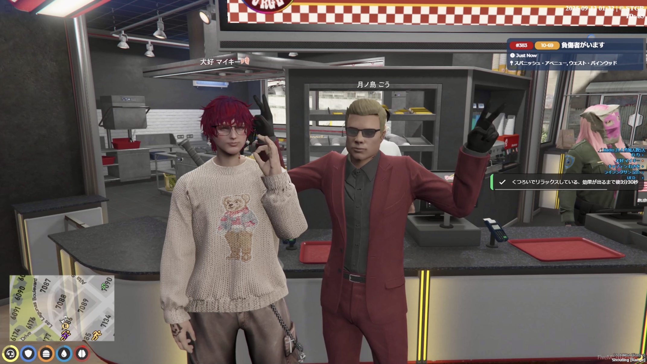 - 22人の友達と一緒にロスサントス観光にやって来た。遅れてあと2人合流する予定。1日限定の滞在で、0時には帰国する。