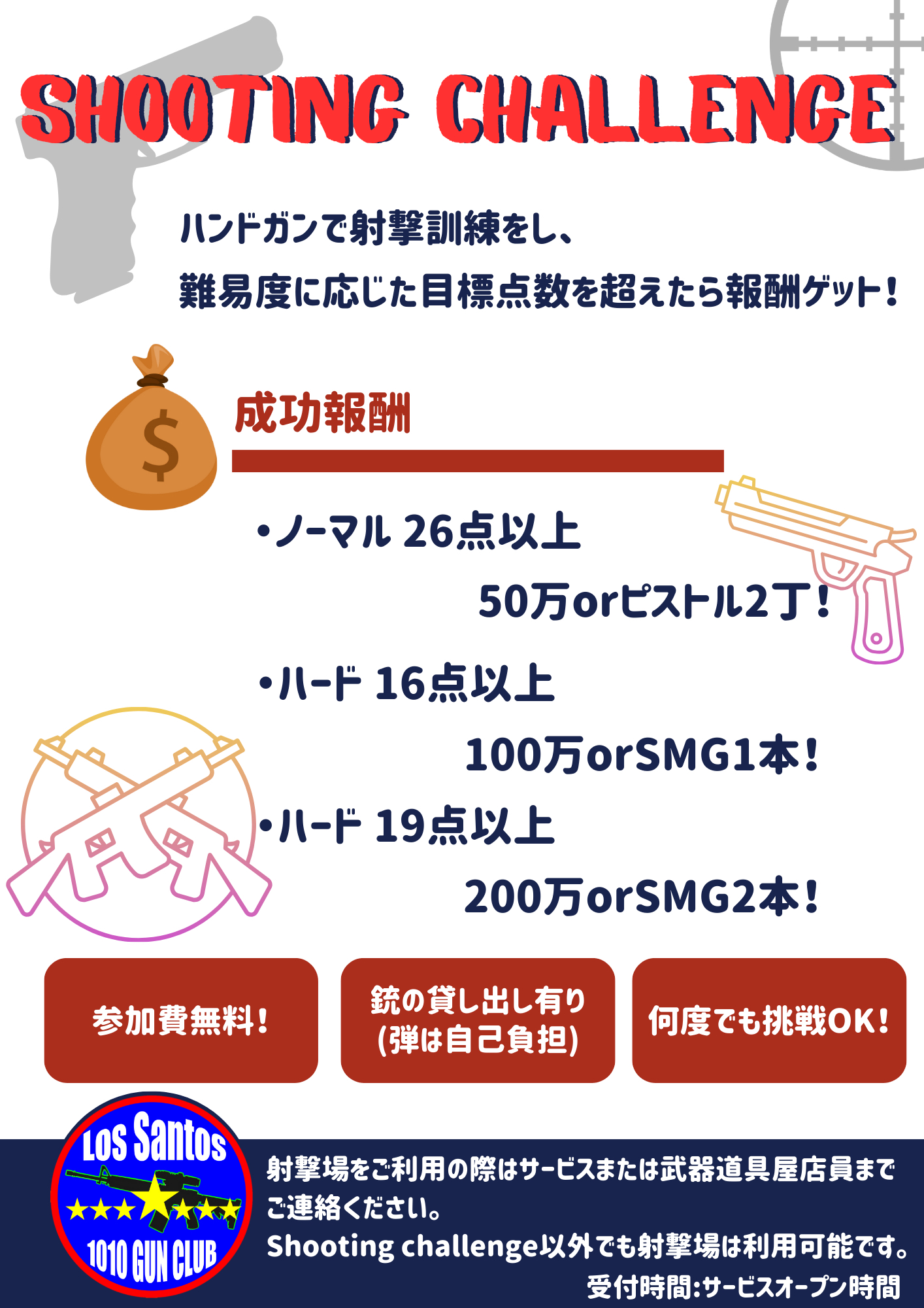 - ハンドガン貸出有り、弾は自己負担
