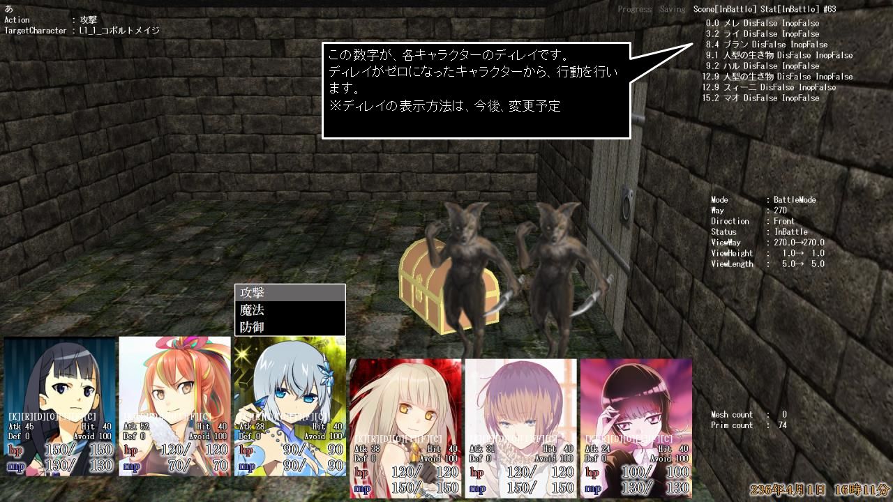 ディレイがゼロになったキャラクターから、行動を行います