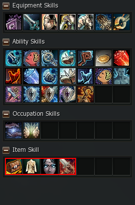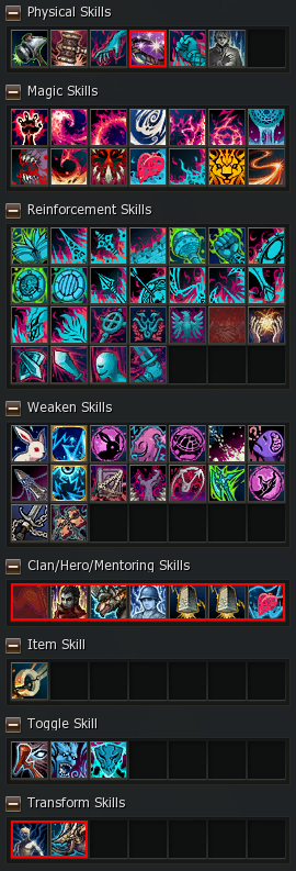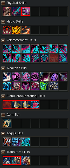 ※赤枠内は変身スキルや血盟スキルなどクラスとは直接関係無いスキルです。