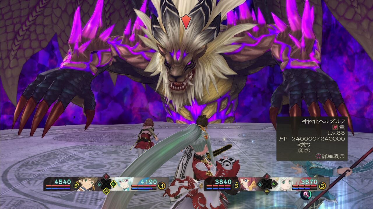 インディグネイションを中断させるとヘルダルフがダウンし、その状態で神依状態の秘奥義を発動すると戦闘が進行する。