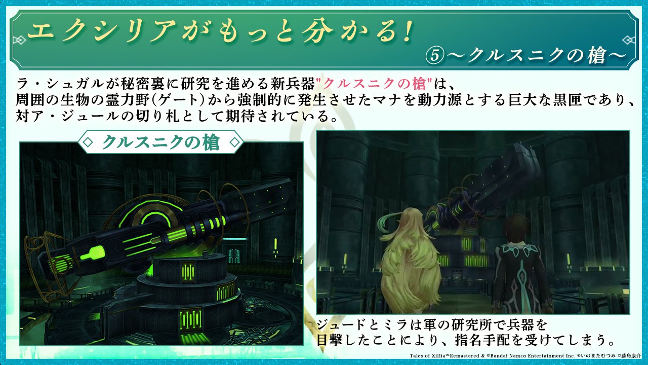 実は兵器ではなく精霊術打ち消し装置であり、オリジナルのクルスニクの槍は20年前にエレンピオス人