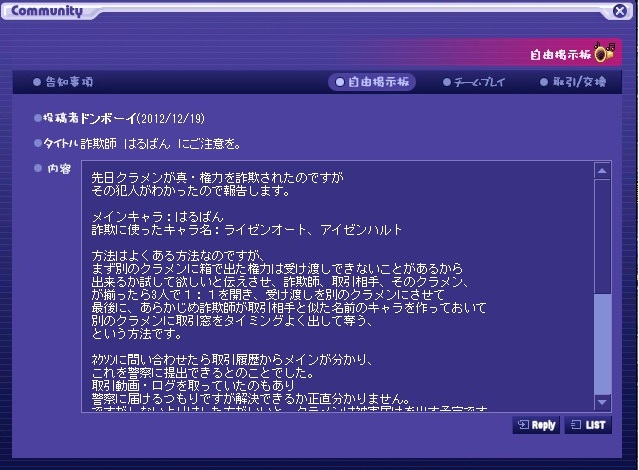 ずばばばばばん=はるばん は確定 取引板で売ってた装備が某有名人が詐欺られた装備