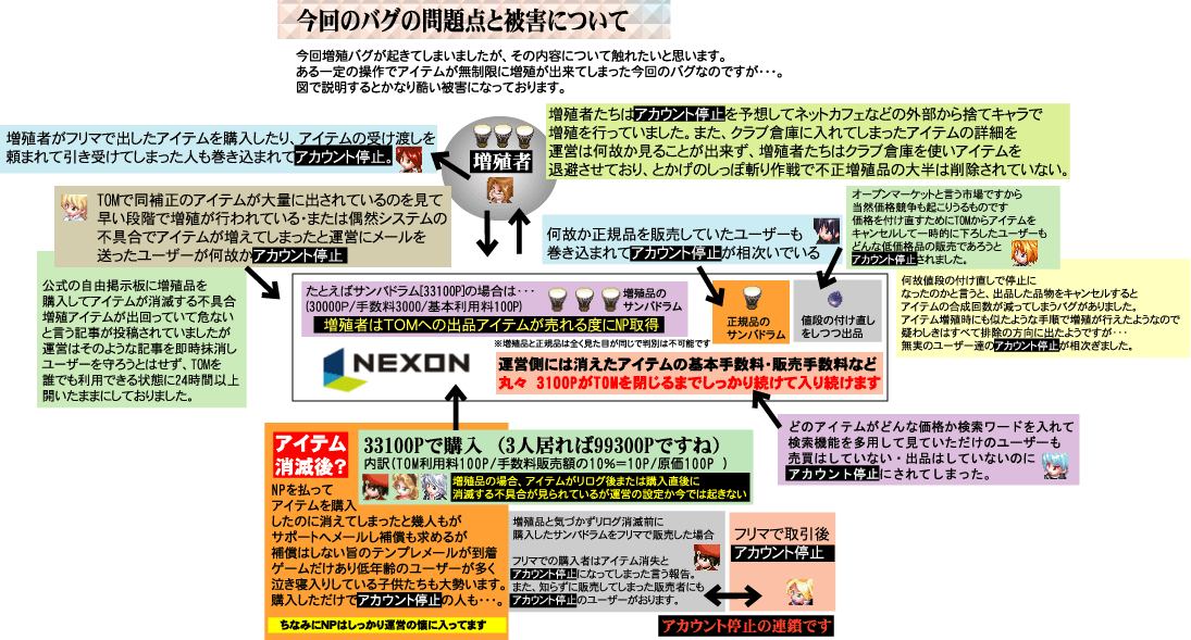 ネクソンサポートは一方的にアカウントを停止し全く理由も教えてはくれません。 今回このチャートを作ることが出来たのも被害者さんによる多くの報告が元になっています。