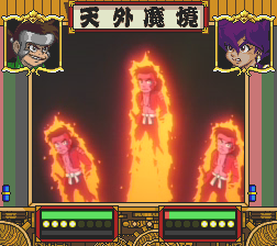 [→]+[術ボタン] | 分身火炎 | 「分身火炎!」 結んだ印から炎と共に 3体の分身が空中に出現して 相手に斬りかかる |