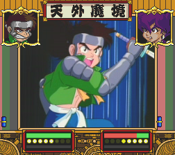 [↑]+[技ボタン] | 二段斬り | 「必殺!二段斬り!…」 飛び上がり2回剣を振るう |