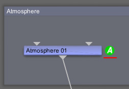 ネットワークビューで目印のアンコンが表示され差別化されます。ノードボックスの右側に「A」と書かれた緑色の円が描かれています。