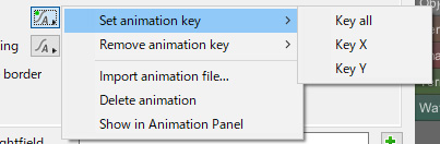 アニメーションボタンは、その都度、すべての座標または個々の座標のキーを設定するためのオプションを備えています。