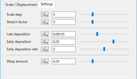Late deposition | 遅延堆積 | 山岳の麓からの堆積量をコントロールする事が出来ます。数値が高い程堆積量が増え、地表が盛り上がります。![]() |