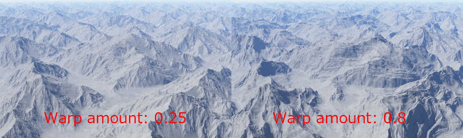 Warp amount | 歪曲量 | 山岳のフラクタル形状に歪曲の効果を与えます。![]() |