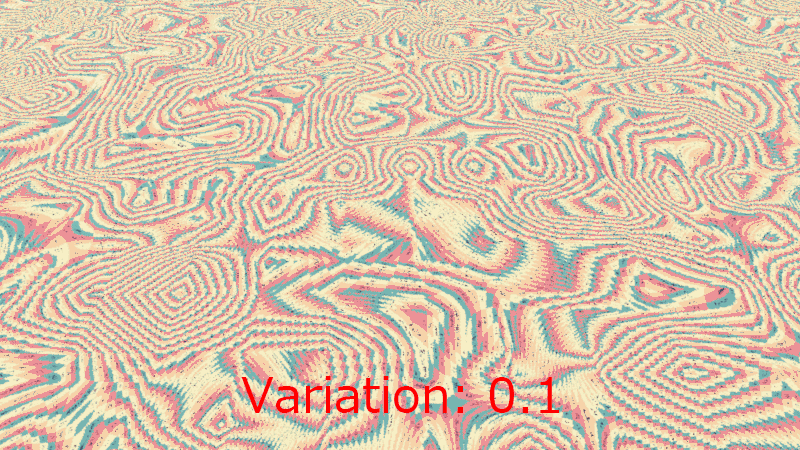 Variation | バリエーション | 歪曲波状の荒さをコントロールします。値が小から大に移るに連れて波状は穏やかになります。![]() |