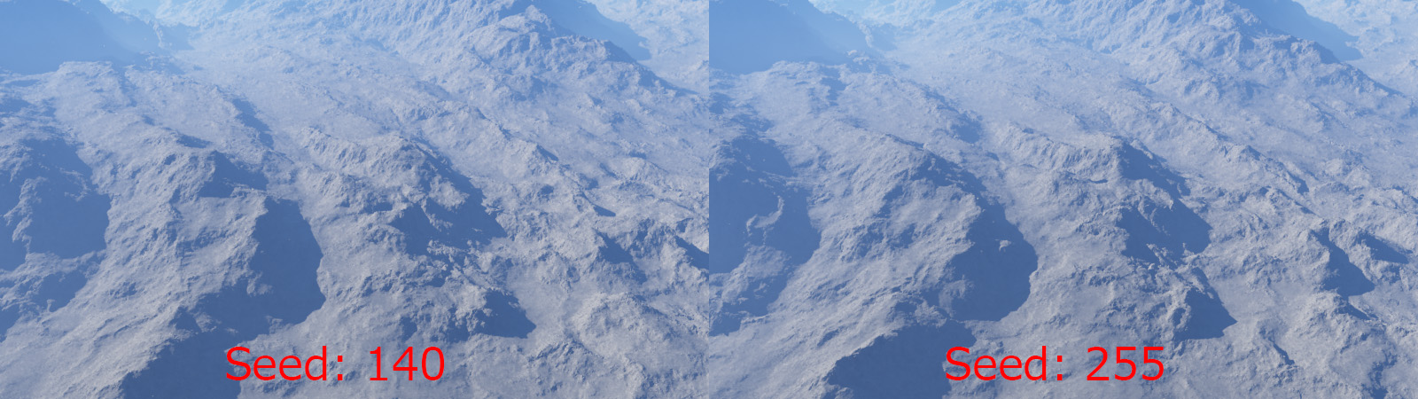 Seed | シード | 上記パラメータ値にシード値のランダム係数を加える事でより多彩な表現を可能とします。同じ数値を入れる事で再現も可能です。![]() |