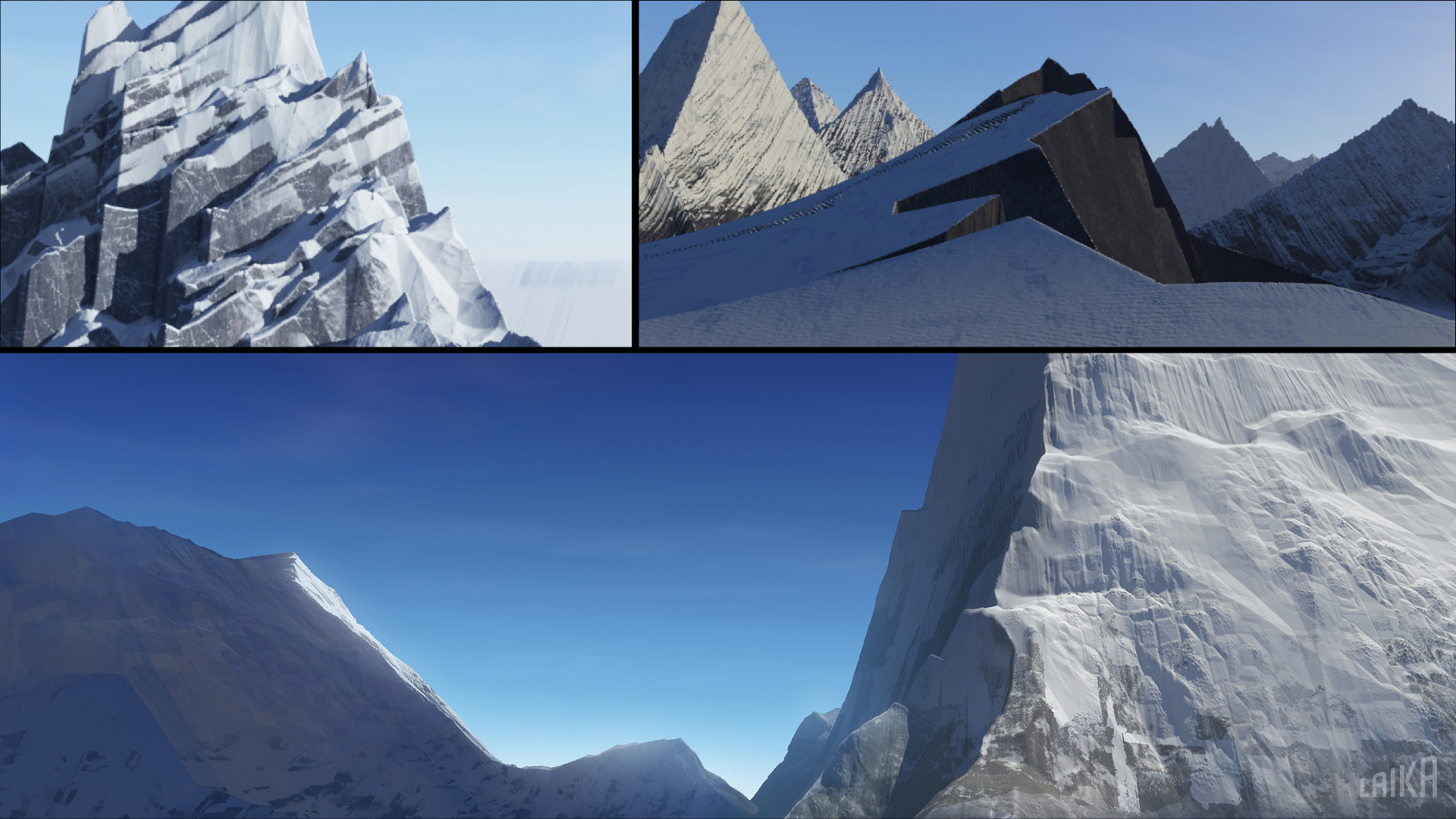 カメラを通して空やセットを見る事が出来るのが気に入っていました。Nelson氏とChris氏がラフな地形を検収した後は、私は最終的な構造物の作成とスカルプト、