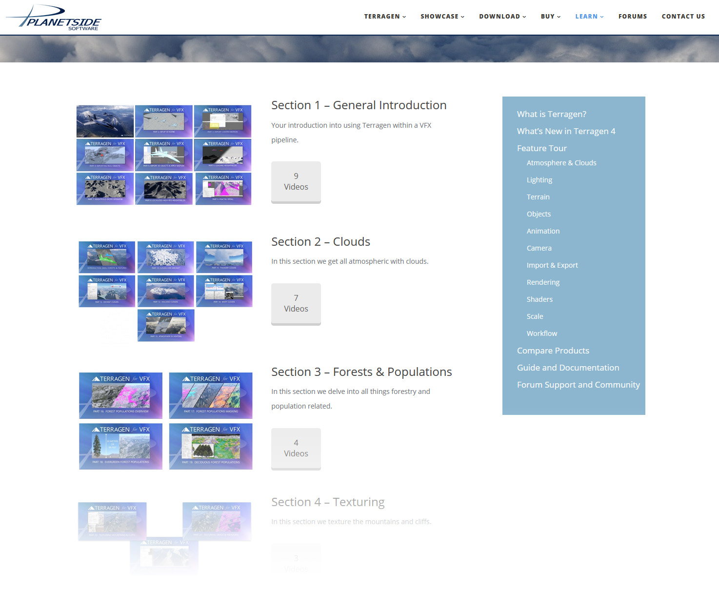 ここでは多くの変更がありました。新しい「Terragen for VFX」チュートリアルシリーズを追加し、常に拡大しているTerraTutsシリーズをWebサイトに掲載し、Wikiサイトも大幅に更新・拡張しました。