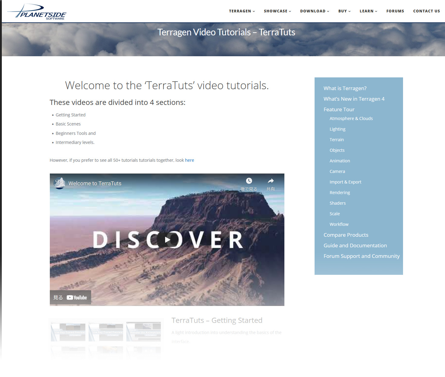 拡大を続ける「TerraTuts」動画が、公式サイトの新しいチュートリアルセクションに常設されました。これは現在50本以上の動画が用意されており、初心者から上級者まで、どんなトピックにもすぐに対応出来るようになっています。