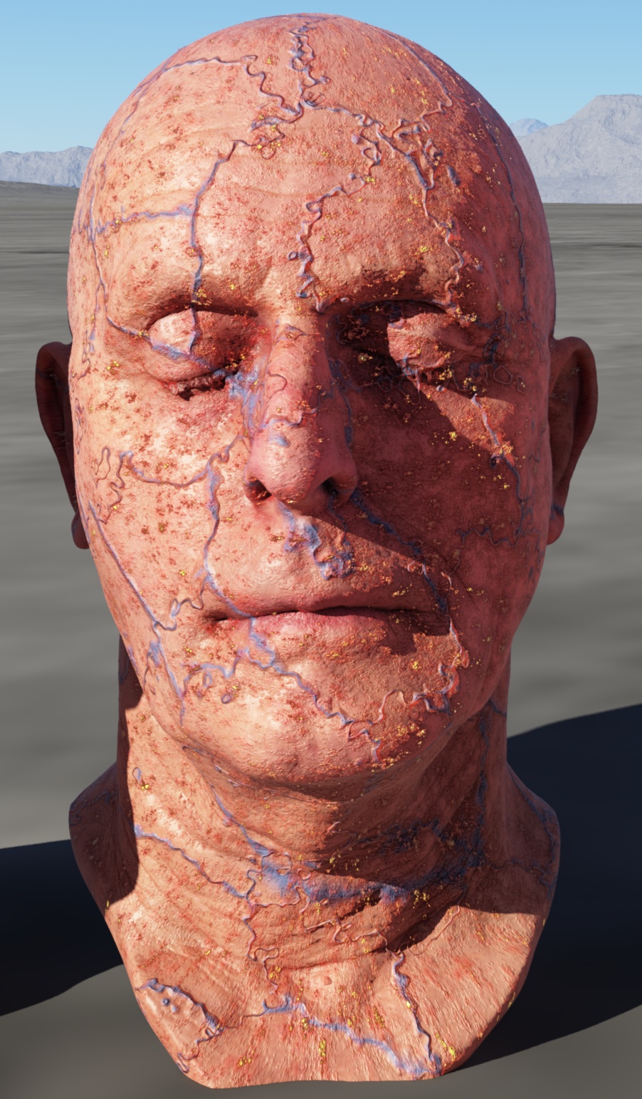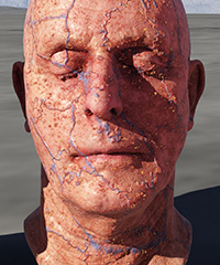 マテリアルテストでも、時にはシーンにもつながることがあります。 例えば『Zombie head』は、モデルとマテリアルの両方のテストを組み合わせた結果です。 言ってしまうと、私はTerragenを使って変わったことをするのが好きなんです。そうすることでいろんな事が学べますからね。 |