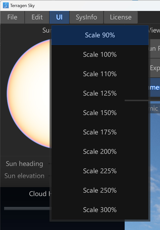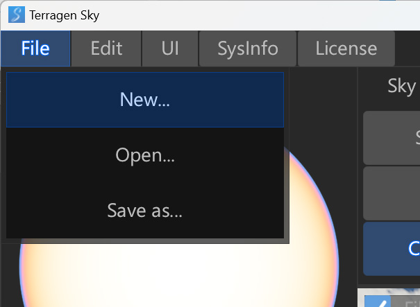 デフォルト値で新しいTerragen Skyプロジェクトを開始します。
