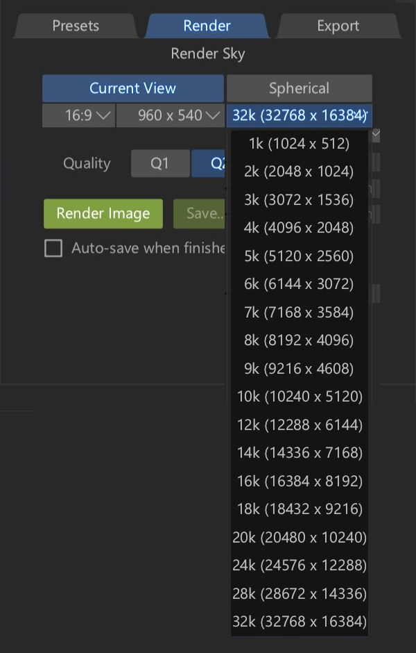 Professionalバージョンの最大出力レンダリング解像度を、32768 x 16384に引き上げました。
