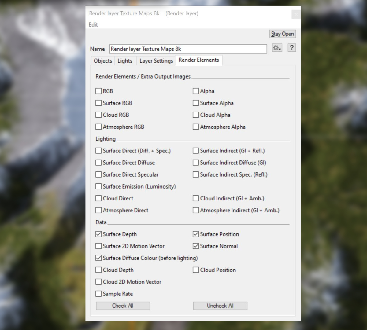 『Render Layers』機能は、作成したメッシュの特定のテクスチャマップやレンダーエレメント(拡散色マップや法線マップなど)を保存するために使用できます。