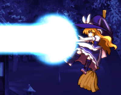 モーション中はずっとグレイズ属性が持続しているためダッシュに難がある魔理沙にとって楽に射撃をかいくぐって当てることができる貴重な技