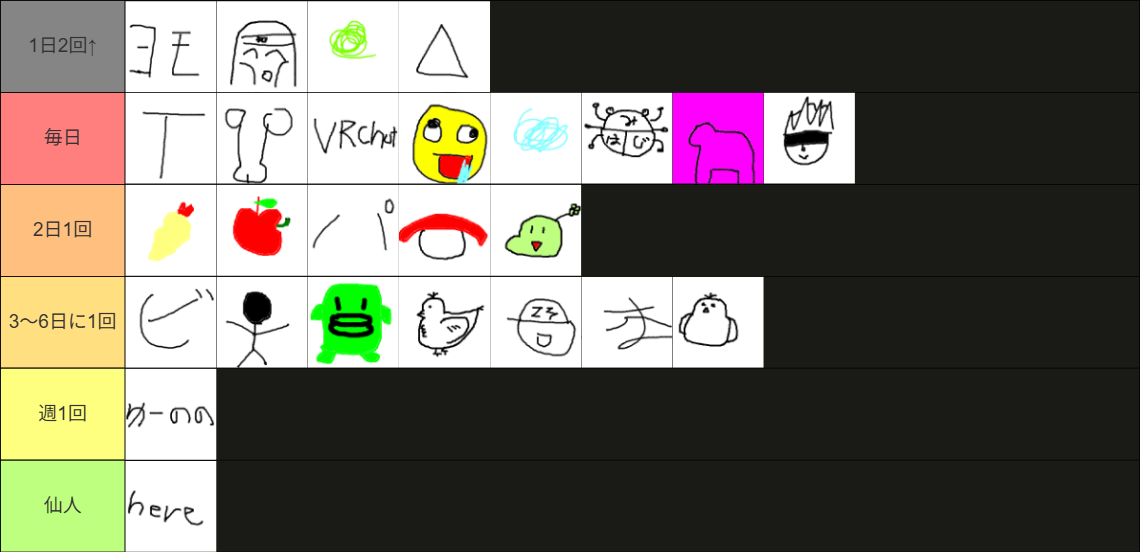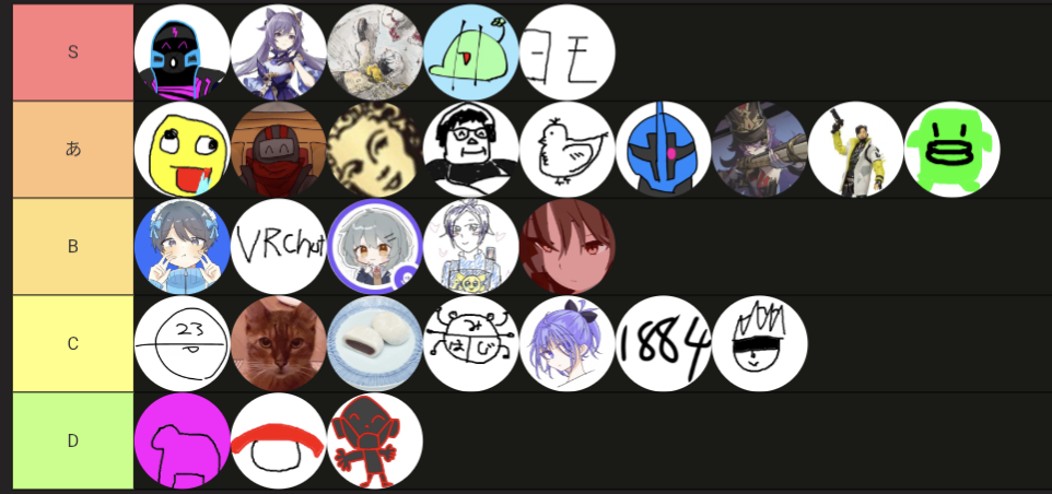 賭博サーバーでは時折、tier表というある一つのテーマにおいてメンバーをランク付けするという活動が不定期で開催される。その結果、作成者の独断と偏見に塗れたランキングが跋扈してしまった。その記録をここに遺す。