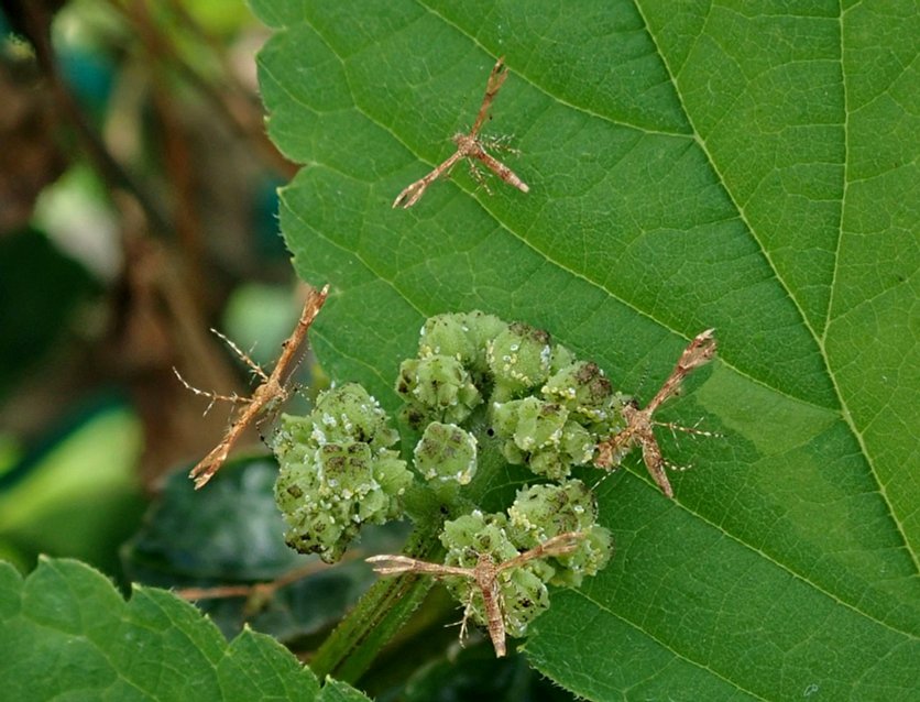 コブドウトリバ がたくさんいた。同じフェンスに絡まるヤブガラシが発生源でしょう。