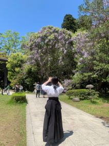 綺麗に咲いている藤やツツジを写真に収めるなど、各自楽しんだようです。