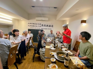 和泉先生による乾杯のご発声で祝賀会が始まり、昇段されたお二人の先生からは、昇段に至るまでのエピソードや、こだわりの射技、弓道への向き合い方など、貴重なお話をいただきました。